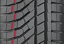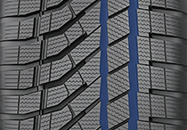 Двойная форма канавок создает дополнительные кромки зацепа, необходимые для прочного сцепления с заснеженной дорогой. Улучшенный контакт между заснеженной дорогой и шиной обеспечивает отличную управляемость и тормозные свойства на зимних дорогах.